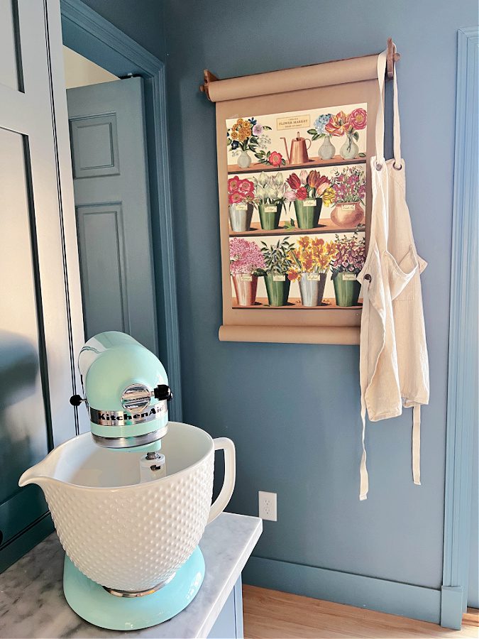 Inexpensive art always makes me happy and when it’s paired with florals, even happier. This is a Cavanilli & Co paper poster. I have an assortment of them and change them out seasonally in our kitchen. They could be framed easily or added to the top of butcher paper scroll like I show here. The price is unreal too! Linked HERE.