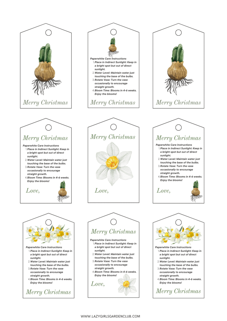 Did you see the email with these free printable gift tags that I sent on Tuesday? They are beautiful and free to you for being an email subscriber. If you missed them you can grab them HERE. They are perfect for gifting paper whites! See how to grow them here!